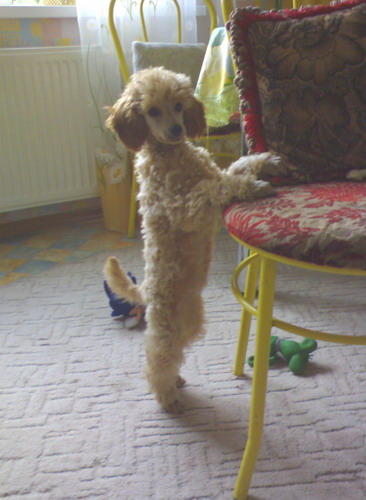 это моя карапетка 5,5 кг весит - она по команде "прыг" буквально взлетает вверх и оказывается у меня на уровне груди - только подхватывай. Сейчас уже высший пилотаж показываем - я её одной рукой подхватываю, так мы отточили слаженность действий в нашем "прыг"е :-) _______________________________________