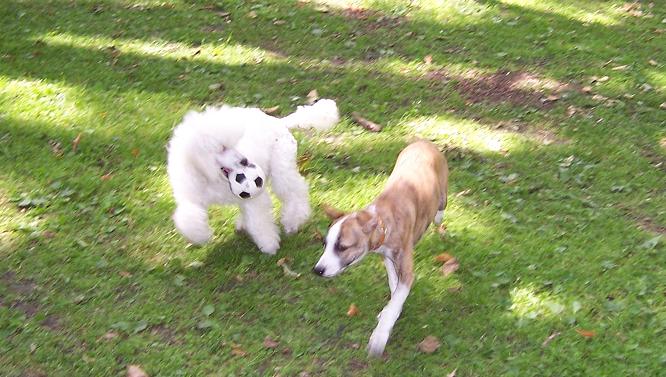 А у нас не разрешается и на выставки и в бегах участвовать.. только что-нибудь одно. Таковы правила Американского Клуба Собаководства.