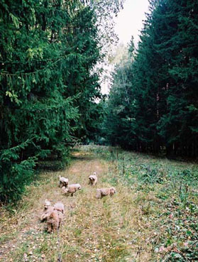 Я в последний раз стригу морду МАШИНКОЙ своим собакам не позже, чем за 2-3 недели до выезда на дачу. Мой участок крайний, рядом овраг и лес, комаров туча! Просто зажрут, если морда и лапки будут бритые! Все лето, пока есть комары, стригу только ножницами. В прошлом году, после того как Дар закрыл Гранд-Чемпиона и м ы уже ничем не рисковали, я решила попробовать перестричь его в Континенталь. Шерсть у него растет быстро и, подумала, если ему не идет такая стрижка, то до осени-зимы все зарастет уже. Но совсем забыла о комарах наших подмосковных!!! ЕГО ТАК НАКУСАЛИ!!!! Мама дорогая! Да я еще добавила - работала газонокосилкой и она срезала гнездо земляных ос. Все собаки (и я) разбежались, а Дар (истинный внук своей боевой бабули Али) решил их переловить всех! Чем это кончилось для выстриженных машинкой участков (уже немного заросших!) - смотрите на фото. Морда не пострадала, я думаю, потому, что очень быстро щелкал челюстями. Все зажило, как на собаке, но выставить его я смогу только следующей осенью, когда сойдут (состригутся) участки с потемневшей шерстью на месте укусов ос. _______________________________________