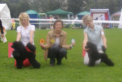 STANDARD, bl br wh Male BLISS TRINE KARTIE (bl) RKF1865317 NSE47 22.03.2006 i: Bliss Trine Empire Style e: Rus Ch Bliss Trine Baby Girl br. L. Chuyko, Russia ow. Igor Kuznetsov, Latvia SERT, res-CACIB, BM-2 MARTINAS CANDELARIO EST LV LTU BALT J CH BALT FIN NORDJW-07 FINW-07 LTUW-08 (wh) EST-03752/07 15.09.2006 985120029353362 i: FIN j W-05 Canmoys Renegade e: INT FIN EST LV CH FIN BALTW-04 Martinas Esperanza br. T ja M Rilanko, FIN ow. Inga Siil, EST CACIB, BOB Bitch SHANS BIZHU OCTAVIA EST&BALT j CH BALTJW-07 ESTjW-08 (wh) 8.12.2006 GGA 884 978000000865673 i: RUS CH Bliss Trine Winter Sky e: INT RUS UKR MOLD CH Shans Bizhu Jenevieve Jose br. L Egorova, Russia ow. A Maksimova, Estonia CACIB, BOS KOZA NOSTRA RUS CH (wh) RKF1699780 ADM360 24.10.04 i INT RUS BLR LT UA CH Zodiacal Hollywood e RUS CH Shans Bihu Janeira Danielli br. Yu Yablonskaya RUS ow. S Antuganova RUS SERT, res-CACIB, BB-2, EST CH MINIATURE poodle, bl br wh Male JADE GARDEN EARTH QUAKE FIN CH (bl) FIN36428/05 9.6.05 985120023080461 i INT FIN CH Lefay Fiddler On The Roof e Jade Garden Beryl br. Maarit Karlsson FIN ow. Jukka Vanhala FIN SERT, CACIB, BOB, EST CH WHITEWAYS GREAT ACTION EST jW-07 ESTj CH (wh) FIN17339/06 9.2.06 985120028839965 i INT FIN EST CH ESTj CH EST&BALTjW-03 Whiteways Gipsy Boy e Airy Arabeska Magnolia br. A Hietarinta FIN ow. Kirsi Koskinen FIN res-CACIB, BM-2 MINIATURE poodle apr red grey Male A COT LUVERS SHEMS DHEB (apr) FIN35107/07 246098100209294 7.6.07 i Sarahill Ginger Ale e ACot Luvers Tinkerbell br. M-L Pehkonen FIN ow. R ja Y Talili FIN JUN VG Bitch DONATELLA EL MONTE (apr) EST-01005/08 ACA7427 31.10.07 i FIN EST LT INT CH Geppetos Roller Coaster e RUS GRAND CH Jantarnaja Komnata Bella Mona Liza br. M S Mogutova RUS ow Julia Radik EST JUN VG Male AIN ULJAS ICARUS FIN CH (grey) FIN14930/04 246098100162973 26.1.04 i Ain Uljas Fedja e EST FIN LV RUS CH LVW-03 Manifique D Argeant Stefany br. A Uljas FIN ow. Emilia Mattanen FIN SERT, CACIB, BOB, EST CH DWARF poodle bl wh br Bitches puppy class EQUERRYS TIME WILL TELL (bl) FIN24367/08 985121005382847 23.12.07 i ESTjW-07 Kudos Time Out e INT FIN S RO EST CH FINjW-02 NORDW-03 Equerrys Makes A Mess br. T Kärki FIN ow. T Kärki & S Häggblom FIN BOB puppy Bitches EQUERRYS BLACKOUT ESTjW-08 ESTW-08 (bl) FIN54581/07 25.7.07 98520032662777 i Kudos Time Out e Canmoys Chic Brunette br. T Kärki FIN ow. Liisa Vihko ja Tuija Kärki FIN jun SERT, BOB jun, EST jun CH, BB-2 Male STAEDLINES SPLENDID SURPRISE (bl)S69036/06 17.11.06 752098100316579 i NU CH ROMAR ITS FOR A REASON IM e SU CH STAEDLINES TRICK OR TREAT br. Lena Hamberg Staedler Sweden ow. Irina Alexeeva RUS CACIB, BOB, BOG-2 METUNAI CALDRON FIN LV CH LVW-08 (bl) EST-00359/06 35G9 9.12.05 i Kuukiire Kiss Me Grinni e Metunai Orelya br. Ülle Kääri EST ow. Rebeca Ek FIN res-CACIB, SERT, EST CH, BM-2 Bitches POLOSPORT SYDNEY INT EST LV FIN LTU BALT BLR CH ESTW-07 BALTj W-06 (bl) EST-00434/05 43F4 s 7.1.05 i FIN CH Lefay Fiddler OnThe Roof e INT RUS EST LV LTU BALT CH ESTW-01 LVW-02 Rulle br. &ow. Karin Kratt EST CACIB, BB-1, BOS DWARF poodle red apr grey Male ANSVEL RUSSIAN REVOLUTIONIST ESTjCH ESTjW-08 ESTW-08 (apr) RKF2080203 958000001195911 3.4.07 i Gently Born Bently e Nebesnaya Lastochka br. T A Polina RUS ow. Ave Kruusel & Karin Kratt EST CACIB, BOB Bitches ACOT LUVER´S TINKERBELL FIN CH FIN45752/03 14.10.03 985100010154906 i INT FIN BALT CH Hestebakkens Golden Rambler e FIN CH Engards Isadora br. M-L Pehkonen FIN ow. Riitta & Younes Talili FIN SERT, CACIB, BB-1, BOS TOY-POODLE Male JUN BOPPIN BOX RIP IT UP ESTjW-08 (apr) LOE171371 7.5.07 985120029730443 i E CH Golden Strik Mirame-Soy-Wily e Poppin Box Nina Simone br. M Lluch & A Barreiro Spain ow. Elisa Ahokas FIN jun SERT,BOB jun, ESTjun CH, BM-1, BOS VIKING JACKPOT NERO (wh) EST-03529/07 233098100015069 25.9.07 i RUSjCH FIN EST LV CH ESTW-06 LVW-07 Magicstar Love On Puymeras e EST LV LT BALT BLR RUS PL CH Diana br. &ow. Svetlana Puissalu EST JUN VG Bitches SAMALIN MARY-MOTTA LVjCH (wh) LV-15259/07 7446 26.9.06 i RUSj&RUS&BLR&UZB CH Kasper iz Cherno-Belovo Kino e LV CH Scarlet Zabava Dushi br. S Malinovska LV ow. Laura Gabranova LV Missing VADE S AFTERGLOW FIN LV CH (bl) 26.3.06 i IRL&DK&FIN&EST CH WA&BALTW-06 Tirkane All About Alfie e INT FIN LTU S EST CH Canmoys Leading Light br. & ow. Heidi Salonen FIN SERT, CACIB, BOB, EST CH _______________________________________
