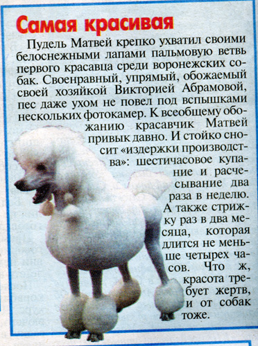 Что хорошо функционирует,то хорошо выглядит!Питомник пуделей "Из Ворожеи" Skype: vorozheya67 E-mail: pips2007@mail.ru |