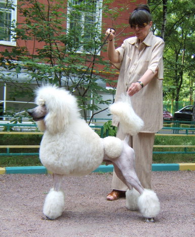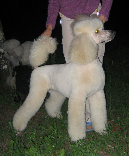 Вельдочка привет! А то, конечно есть. Мы окупировали лесок за домом и теперь там гуляют только пудели и мамы с колясками, лесок огорожен забором и там ЧИСТО. Ну а при виде ВСЕХ наших собаков баскервилей даже ротваков и ам.бульдогов уводят. Т.к. моя стая никого кроме пуделей и русского спаниелья Сэма не признает. Ну и вот список наших пуделечков: мои- Кеша(большой черный), Марфа(большая белая), Зями(черный карлик, заводила и "пахан") Юлины- Нюра(большая белая), Дуня(абр. тойка, скоро поедет в свою новую семью после полного выздоровления, и вообще той воспитанный большими это нечто!!!) и Ларик(большой абрикос, сын наш из последнего помета, приехал в гости на 2 недели, вот его только и смогли помыть и побрить) а так же Зямины детки с их владельцами. Ну и нас толпа. Спрашивается, кто сунется к нам? И вообще, это так красиво когда видишь много больших пуделей!!! _______________________________________