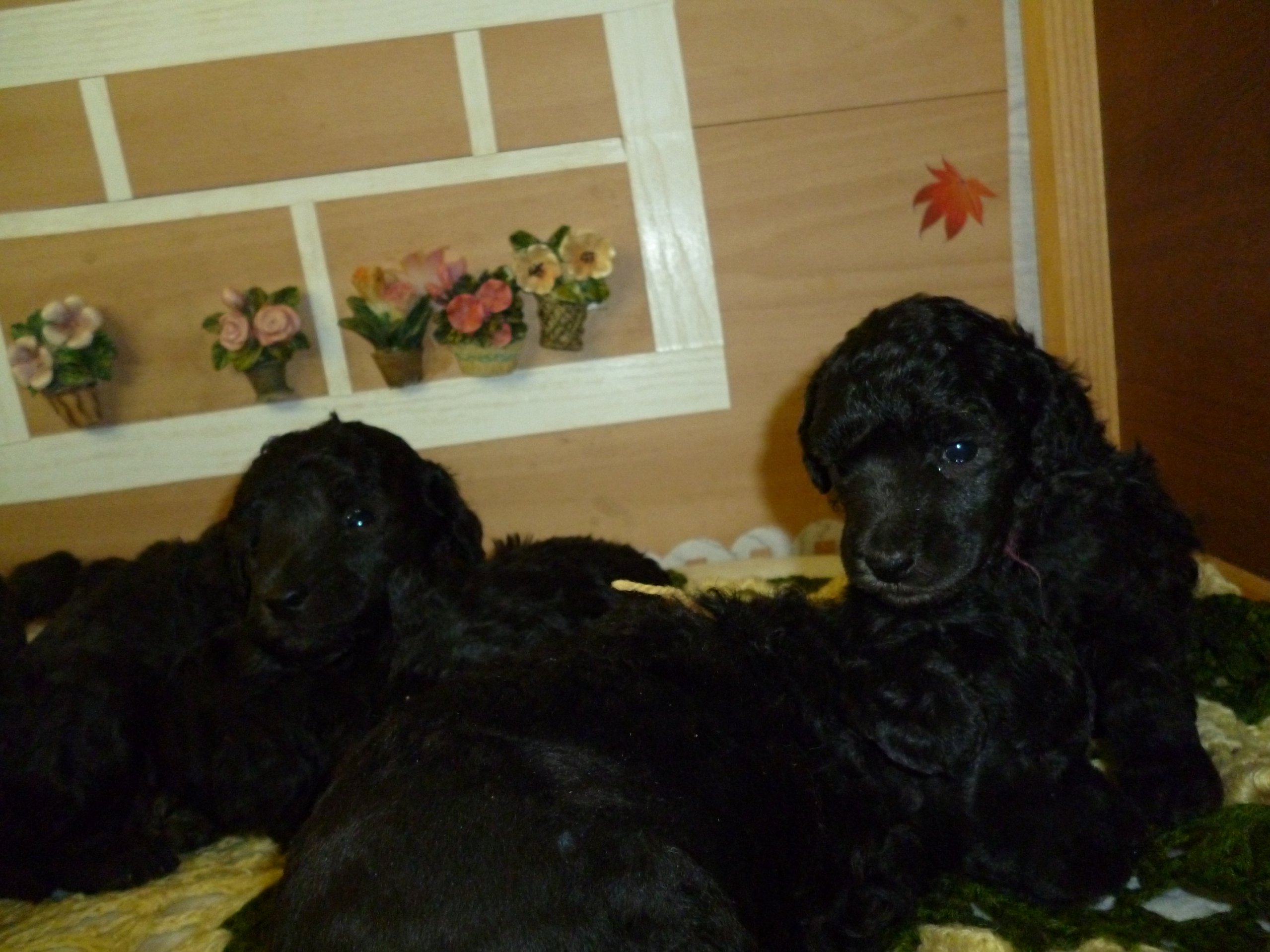 Послезавтра щенкам будет 1 месяц, сфотографирую - выложу. Девочки будут небольшими тойками, один мальчик тоже хочет быть тоем, два мальчика - ровненькие небольшие карлики, а один карлик, думаю будет 33-34 см. - самый шустряк. Щенки спокойные, чистоплотные, но плохо кушают, кроме скаблёнки и творожка не желают ничего есть.