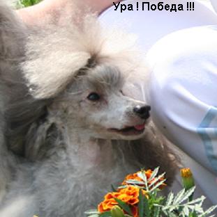 Ну-с, дополняю. Поздравляю Никушу - она CACIB и 5 в группе! Верочка, спасбо тебе за все и подздравляю Никучку!!!!!!!!!!Dolce Vita моя закрыла Интера таки теперь точно и неоспоримо! Получила CACIB в экстремальнейших условиях - темп. асфальта была равна примерно 51 градусу, собаки - 90 процентов либо прижимали хвост от боли к пятой точке, либо подскакивали как на сковороде..........Но Ланычу вощим энтузиазизьма не занимать)), как дунула)), правда на ЛПП уже усе ее терпение лопнуло и нас "перетерпел" Алдарон, выглядел эффектно, двигался очень красиво и победа очень основательная! Поздравляю Наташу - владелицу Алдарошки. Алдарон в группе получил 3 место. Далее Глашуня в гордом одиночестве получила таки свой юниорский ЛЮ и JCAC, ну и соответсно я возможно теперь при том, что собран русский, закрою и белоруский юный. Затем на юниорском довольно многочисленном Бесте мы выиграли призовое 4 место. Получили красивые медальоны и кубочек. Таааааааааак-с, в огромной тойской конкуренции ЛПП у Масяньки. Поз0дравляю с таким подвигом повоторным после Самары Галю Алексееву, у которой к тому же был еще и ДР! Из карликов абрикосов CACIB и ЛПП - Еленсис Эстель! Поздравляю! В малых классике я так поняла, что выиграла сука из Классик Альянс, если я правильно просчитала. Не буду утверждать. Ну и в больших офигительно, нет просто фантастически смотрелся Король Людовик Зирка Антарес - открытие этой Евразии!!!!!!!!!!!!!!!!!!!!!!!!!!!!, он затем и выиграл ВСЮ выставку! А выставка была отнюь не мелкой и по составу участников и по качеству представленных собак, что делает выигрыщ еще ценнее!