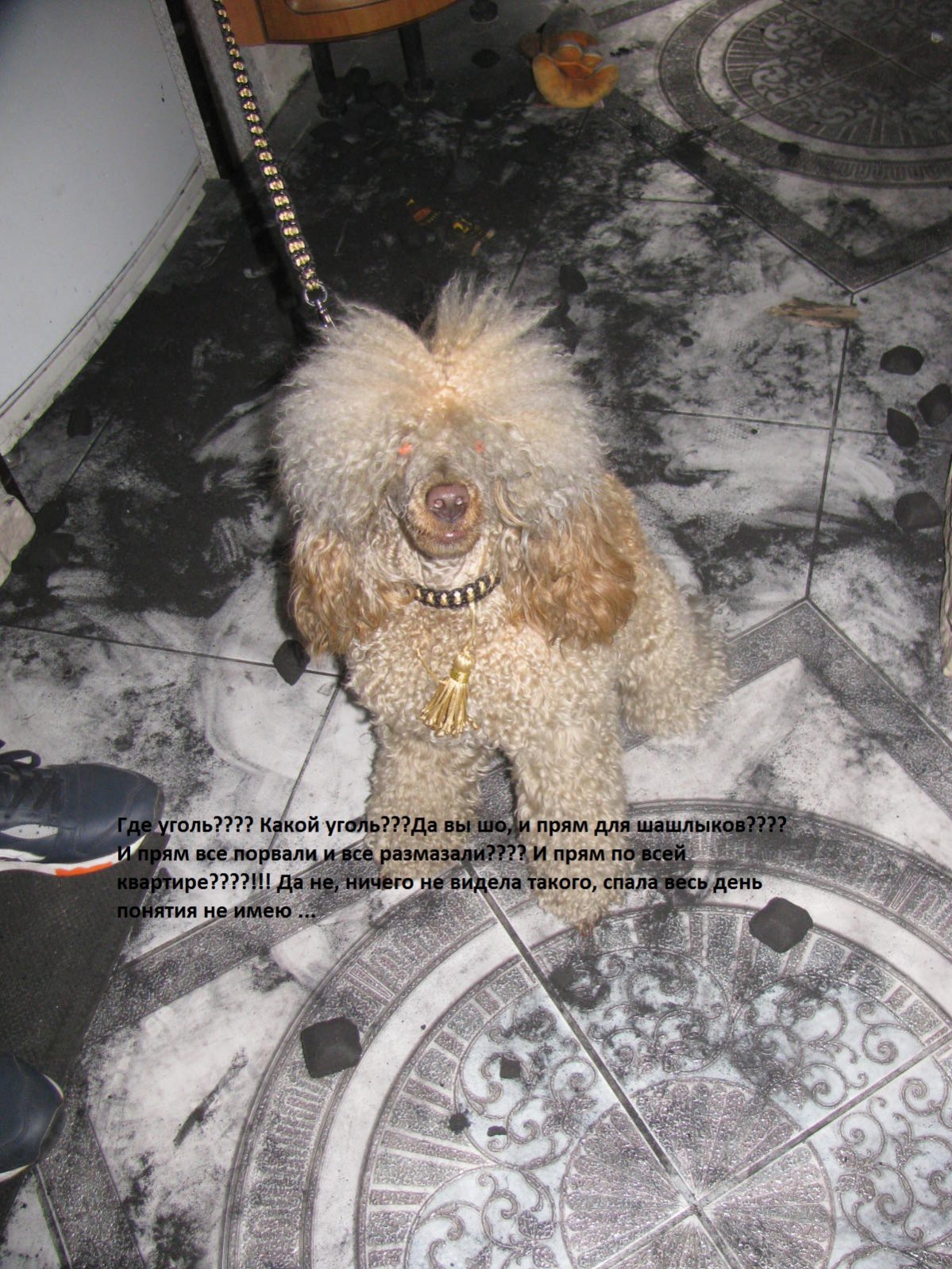 Не поверите, там в пакете на дне оставалось после шашлыков. Я эту всю мелкую пыль смела на один совок, а угли в маленький полиэтиленовый покет сложила. Это так надо было драконить этот пакет, что пыль была не только на столах, но и на верху холодильника можно было в крестики нолики играть. пакет стоял в углу уже неделю, и мне в голову не пришло, что Елка найдет ему применение. Правда пол пришлось 12 раз мыть, чтобы от черноты избавится, зато Елка на шестой отмылась.