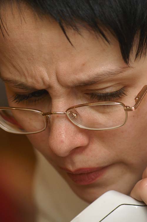 О! Нашла. Это на какомто мегаумном мероприятии я пыталась сойти за умную тоже. Наш газетный фотограф снимал. Потом рассказывает - щелкаю, щелкаю. Наконец нахожу в толпе нормальное человечемское лицо. Снимаю. Смотрю - тьфу, Машка!