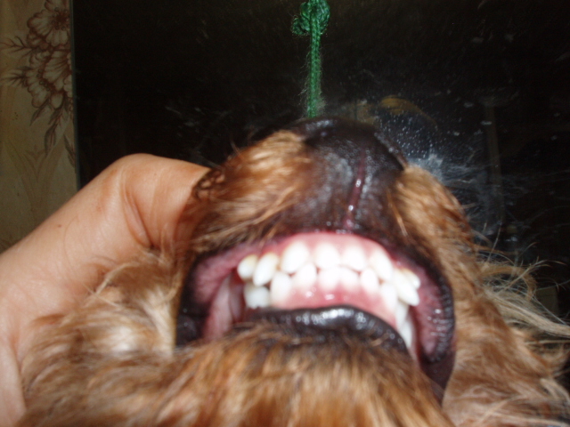 Открываю карты: щенку 8 мес и у него как у всех 6 резцов и 2 клыка на верхней челюсти, но вот только клыли не в то место растут и замка соответственно нет(( _______________________________________