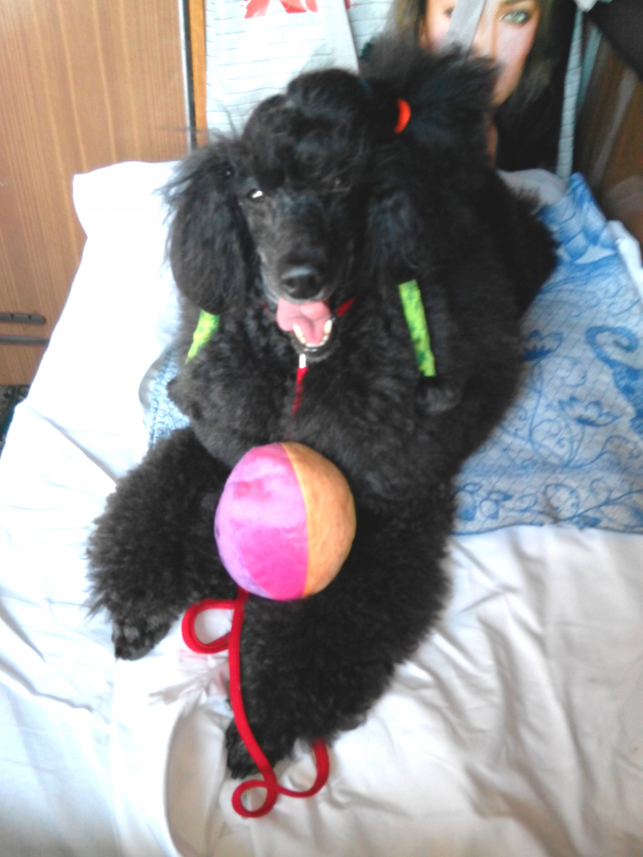 Я , все-таки, попала на Националку!!!!!!!!!!!!!!!!!!!!!!! Собиралась поехать без собак, просто посмотреть, но за 1.5 часа до окончания регистрации зарегистрировала Дарта в ветеранах. В Кирове подсела в вагон к девушкам из Перми и до Москвы доехала в ооооооочень приятной компании, в которую входили : Наталья Шачкова с Полем (Альквалон Сарданапал) , Ирина Ахмадиева с Боссом (Солнечный Лев Хьюго Босс) и Вера Эренбург с Тиффани Из Мимолетного Видения. У Тиффани были последние дни течки, но мы четко пасли своих кобелей и отслеживали ситуацию. Но мой Дарт ночью все-таки наведал девушку :), но получил отпор :). И Вера мне тут же вернула жениха :). И, еще раз, спасибище большущее Ирине, что уступили с Боссом мне нижнюю полку. Вообщем доехали замечательно. Выгрузившись из паровоза в Москве , прогуляли собак, нашли шикарную большую машину с очень услужливым дядькой, который и довез нас до Сокольников и доставил прямо к павильону. Погода шикарная, солнечно, достали стульчики и уселись ждать открытия павильона в очень душевном состоянии. Заодно и собак глобально выгуляли :). Но оказалось, что мы сидим не у того входа. Собрали веши и покатили туда, куда надо. Входим в павильон одними из первых - и тут на нас накатывает состояние умиротворения - так все уютно и красиво оформлено!!!!!!!!!!!!!!!!! Супер просто!!!!!!!!!!!!!!!! Хлопочет Лена Внукова, проверяет все ли везде хорошо. Леночка, спасибо тебе большое за те 1.5 часа :))) !!!!!!!!! Спокойно разместились, где хотели, никакой битвы за места, так как места было предостаточно. Разложились, огляделись, прошли вет-контроль, пошли регистрироваться. На регистрации встречают Офелия Николаевна и Юлия Николаевна - без толчеи, спокойно, радушно, по-домашнему просто!!!!!!!!!!!!!!!!!!!!! Ну и потихонечку начинаем готовиться к рингам. Я вначале готовила нашего кировского большого белого юниора - Анаджинг Вайт Бой. Мартин получил 2-е отлично в своем классе. Потом начала готовить Дарта. Параллельно успела пообщаться почти со всеми знакомыми пуделистами!!!! Всю выставку пребывала почти в нирване :)))) Так было все здорово!!!!!!!!!! Дарт, как всегда, отработал на 100% в ринге - он это дело обожает просто!!!!!!!!!!!!!!!!! А мне нравится, что ему нравится :))). Дарт получает отлично , CW, ЛВ, в разновидности малый черный пудель. Дальше - снова масса времени на то, чтобы посмотреть на шикарные ринги шикарных собак и пообщаться с пуделистами. Вообщем, полный релакс!!!!! Дорогие организаторы, спасибо огромное за такую необыкновенную выставку!!!!!!!!!!!!!!!!!! Леночка Ежова, спасибо тебе за такое душевное отношение к владельцам экспонентов!!!!!!!!!!!!!!!!!!!!!!!! Просто не передать словами какие были красивые заключительные конкурсы - все собаки очень высокого уровня и прекрасно подготовленные!!!!!!! Мы с Дартом получили невероятное удовольствие от ветеранского беста!!!!!!!!!!!!!!!!!!!! Классно было!!!!!!!!!!!!!!!!!!!!!! Такая поддержка от зрителей!!!!!!!!!!!!!!!!!!! Вообщем - супер!!!!!!!!!!!!!!!! Просто удовольствие выставляться в такой компании!!!!!!!! Дарт - BISV-3!!!!! Спасибо за красивые подарки, кубок и вкусные конфетки в красивой коробке!!!!! Еще Дарту очень понравился мячик, котроый мы получили при регистрации!!!!!!!! Заключительные ринги были просто шикарны!!!!!!!!!!!!!! Поздравляю организаторов, победителей и участников с такой выставкой!!!!!!!!!!!!!!!!!!!!!!!!!! Офелия Николаевна, Мария Николаевна, Ираида Кочергина, спасибище за роскошно накрытый стол!!!!!!!! Все было