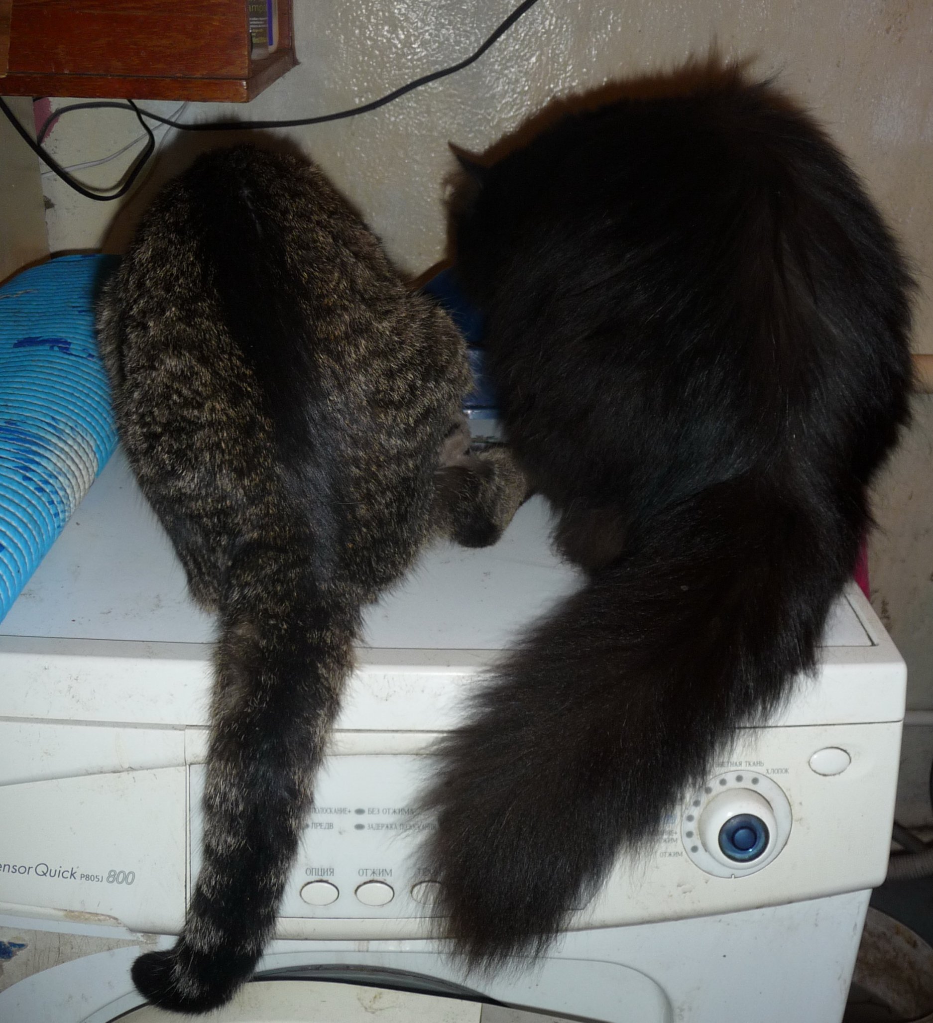 в прошлом году я показывала мелкого Кота и кошку Машу. сейчас Коту год. всё те же хвосты.