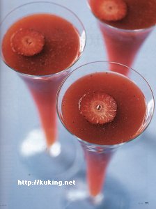 Полный китч с божественным ароматом лета. Украсьте коктейль кусочками клубники. Ингредиенты: На 1 большой или 2 маленьких: 100 г клубники без хвостиков 3-4 ст л белого рома 2 ст л сока лайма 1 ст л апельсинового ликера (по желанию) - например, трипл сек, куантро, гранд марньер или похожего 1 ч л сахара горсть кубиков льда Инструкции: 1. Взбить все ингредиенты в блендере. Перелить в бокал, украсить и подавать. _______________________________________