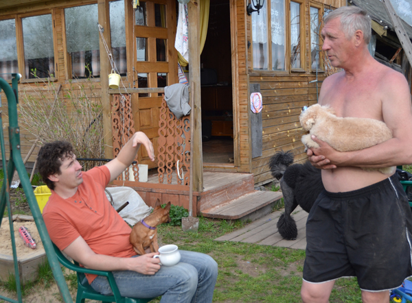Ну и наши мужчины со своими собачками! Кстати, ведут беседу на тему строительства. Но они даже не замечали что постоянно носят собак на руках.