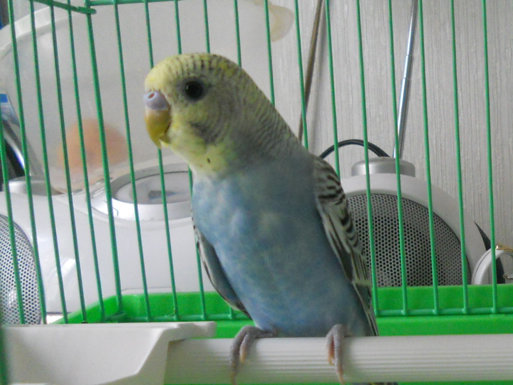 А у нас пополнение ))) Дети купили черепаху . Она дает потрогать носик , чему все счастливы , и вполне подвижна . Коля созерцает ))) Надолго внимание задерживает , утихает , и наблюдает ...)))) А сегодня забрали домой попугая волнистого . Ему три месяца . Сколько ходили смотреть птичек , он всегда на нас глядел , дети болтают - ну и он с ними )) На деемся , научим говорить . Детям он разрешает и головку потрогать , и пузик . Даша перебирает перышки - он глазки прикрывает . И все слушает ...)))Пока в клетке . Приучаем . Черепашка Чили ( или Чичи ) . А попугай Кеша , конечно! )) Герда сначала на его полеты прибегала , но к вечеру потеряла интерес . А Бусинка не хочет на него и смотреть )))Вот такие дела .