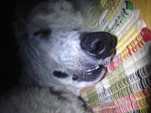 Инет там был плохой, писалось через раз((( Альбус отмачил там номер, пока я была на массаже , он вылез в форточку нашего домика и пошел гулять по базе с детьми. Сказать , что я была в шоке - это ничего не сказать. Выхожу, бегает довольная толпа детей с ними мой пес, не менее довольный . Подхожу у домику.... Закрыто на ключ... Увидела сораванную шторину и всё поняла!!!!!! Я думала выматать десятимесячного пуделя никому не под силу, а вот и нет!!! С этим отлично справлялись каждый день толпа детей на базе, по утрам я не могла разбудить собаку))))) А вот вечерняя фотка)))) было прохладно, но от усталости он засыпал с чуть приоткрытым ртом)))) |