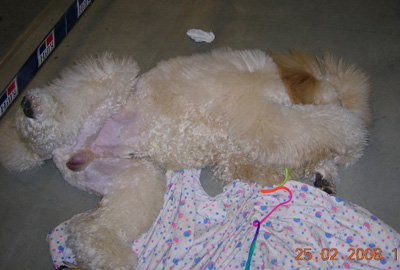 На самом деле этому заср... пардон, пуделю... стыдно не бывает и быть не может. Поскольку для стыда нужна совесть, а он ее в принципе не имеет. Это он просто от света прикрывает лапкой глазки. А то достали тут, понимаешь, выставками - поспать не дадут! (ну а если совсем честно, то он по команде такие трюки делает :)) Большая-большая, белая и пушистая благодарность ulyayar , которая в первый день выставки присматривала за моим балбесом!