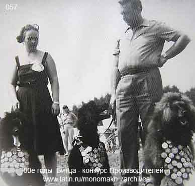 Кроме меня на форуме есть еще есть те участники, которые могли бы разместить в этой теме материалы интересные для более молодого поколения любителей пуделя. Надеюсь, модераторы нас поддержат! Повторю здесь несколько фото ранее размещенных на форуме К-9 в теме "Советское собаководство". Думаю, что им здесь тоже место подходящее. Если вам интересно - добавлю ещё. А вообще-то я готовлю специальный раздел своего сайта - "monomakh-archives". Как только осилю (финансово) приличный сканер - ухххххххххх! Вы будете приятно удивлены! Итак, начинаем. 50-е годы прошлого века. Выставка ДОСААФ в Измайловском парке. Большие пудели. _______________________________________