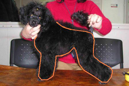 Вообще вся стрижка соответствует анатомии пуделя, мы лишь добавляем чуточку экстрима - немного длинее шея, немного более выражены углы конечностей... Шерсть на спине - горб - убирается в соответствии с длиной шерсти на затылке. Тот же принцип: ведь у пуделя анатомически нет горба, значит, и стрижкой мы его там не делаем. Про ноги - угол колена соответствует анатомическому колену, скакалка - скакалке. Начало верха штанов передних ног соответствует началу самих передних ног (углу предплечья-плеча). Пожалуйста, спрашивайте подробнее что-то: трудно описать за один раз всю стрижку пуделя. |
