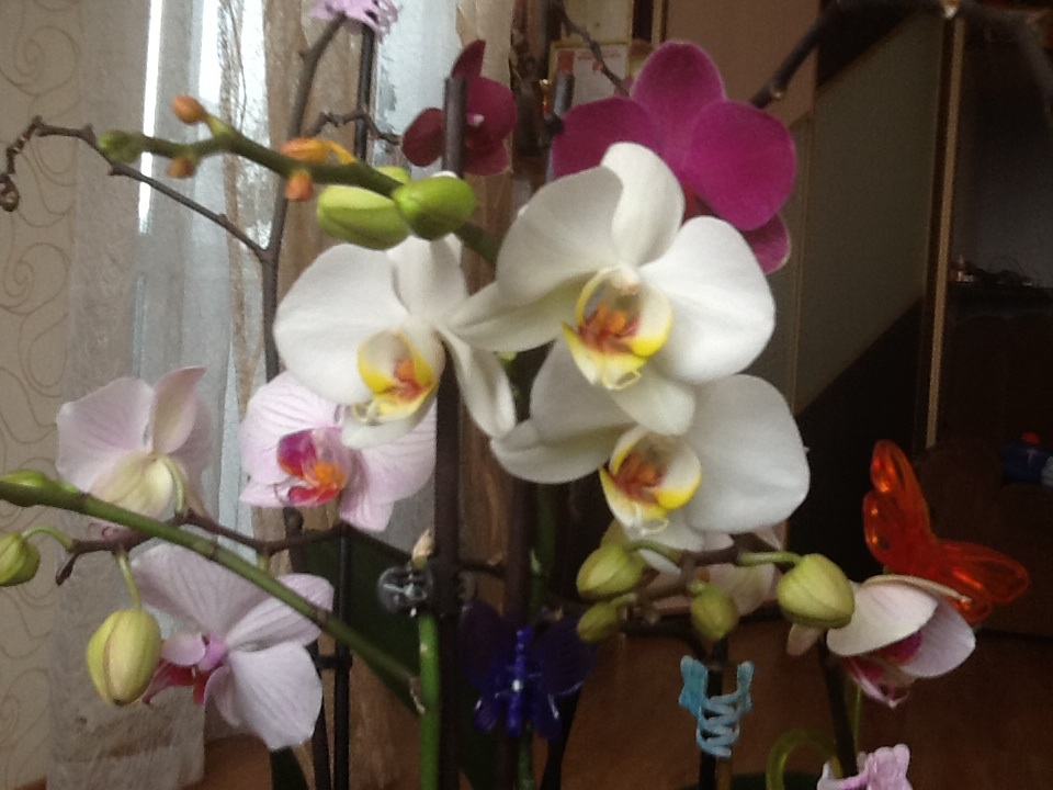 Пока меня не было - зацвели белые и сиреневые орхидейки