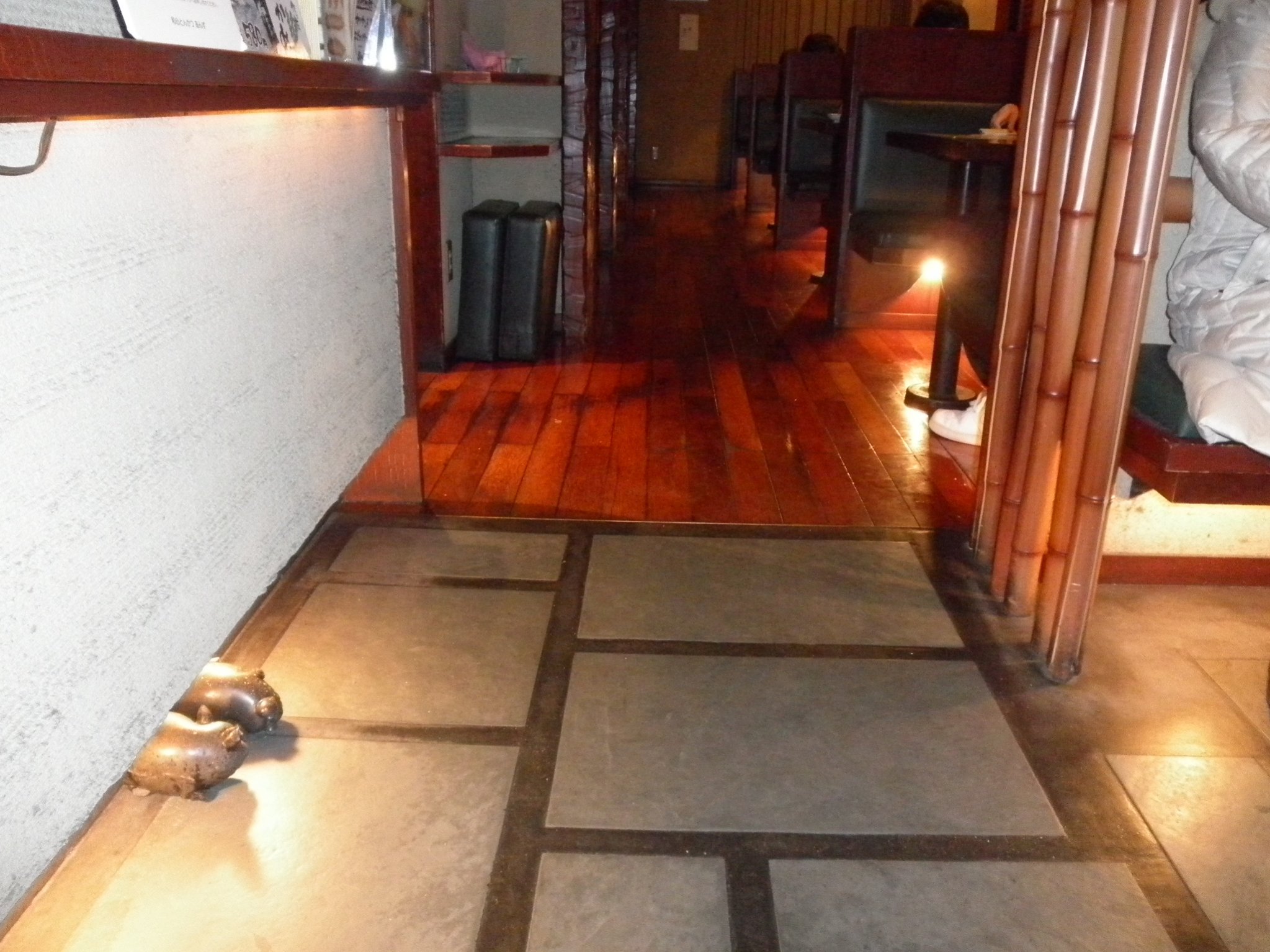 Мы этот ресторан посещаем уже много лет, нашли его - он уж был не новый. Сфотала специально на двух проходах основных, доска в прекрасном состоянии, а там нагрузка максимальная и все ведь в уличной обуви ходят!