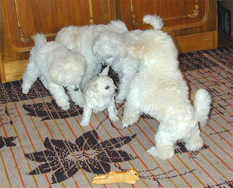По моей просьбе заводчица выпустила суку помета "В" (одна в помете) к актированному в этот день, старшему чем она на полтора месяца помету "А". Отсняли кучу кадров - это был цирк! - но не все удачные... _______________________________________