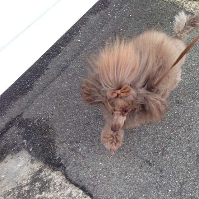 А вот как считаете, это шоколад или сильвер-беж? Хозяйка (японка) называет собачку коричневой. Что интересно, даже при таком сильном осветлении окраса, отчётливо видна рыжина, а не серо-сиреневый оттенок, как это часто бывает (это я сужу по фото на асфальте). По мне — очень приятный окрас.
