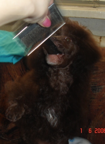 А по поводу стойки это не реально,крутится она как заводная. Помоему, она очень похожа на той пуделя- маленькая такая. Единственное ее отличие эти белые пятна.Еще хвост не купирован у нее, и не очень крутой завиток. новичок добавил(а) [date]1149229585[/date]: Кстати, у нее сейчас смена зубов. С какого месяца она происходит у маленьких пуделей.С 4 ? |