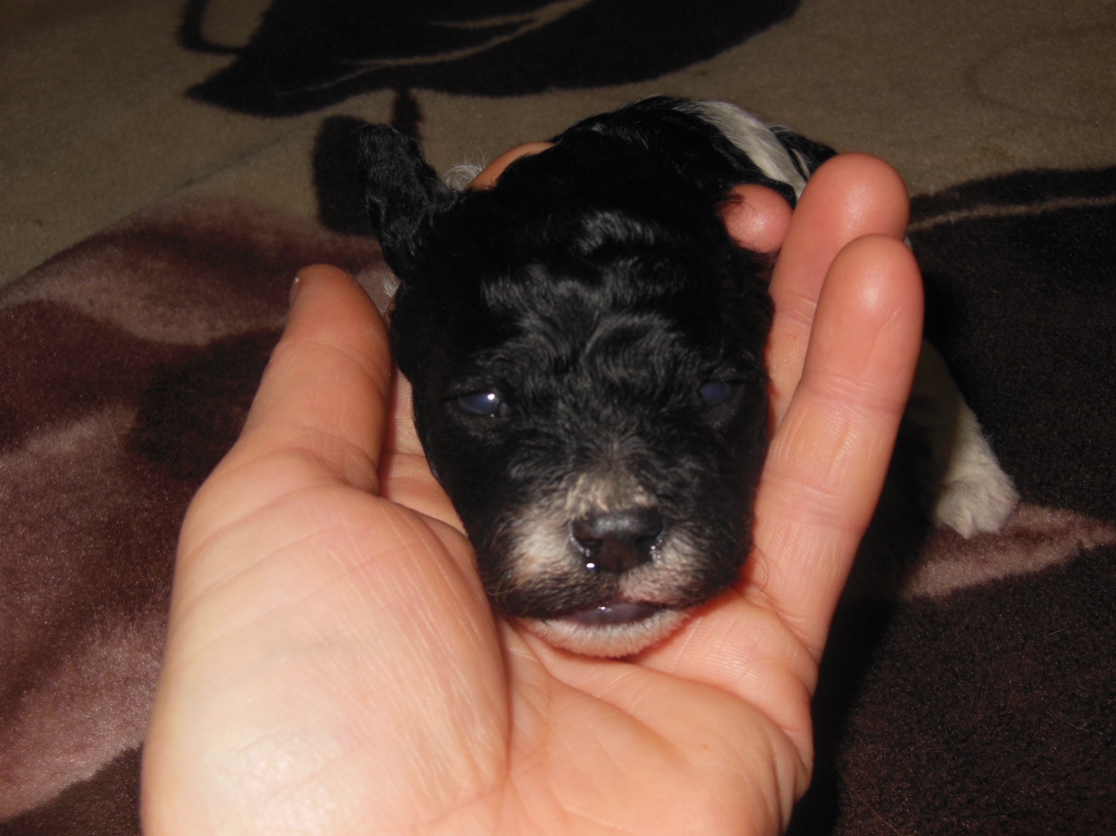 А нашим арлекинчикам 15 дней и они открыли глазки. Девочка бело черная. Вес 470 гр.