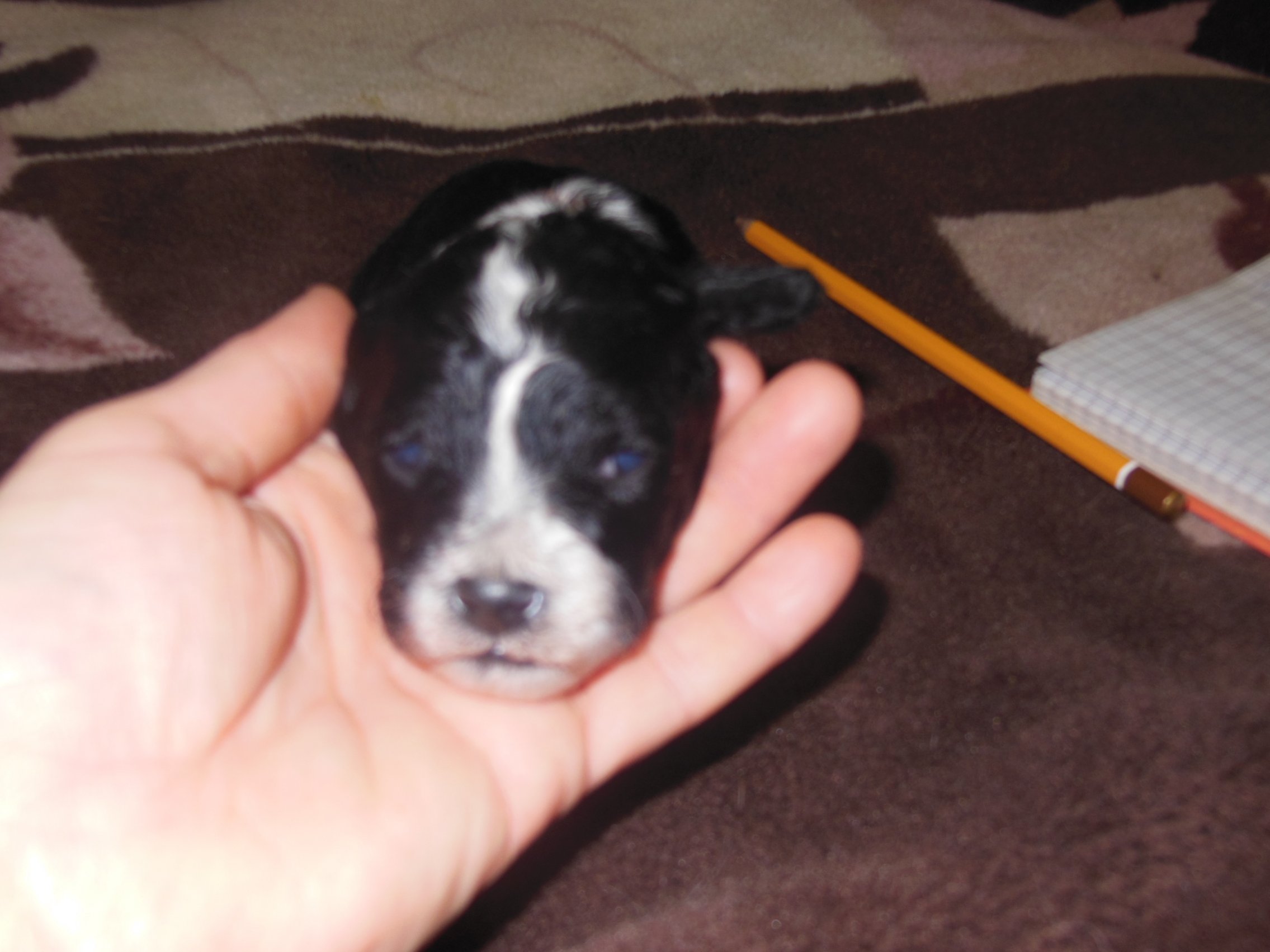 А нашим арлекинчикам 15 дней и они открыли глазки. Девочка бело черная. Вес 470 гр.
