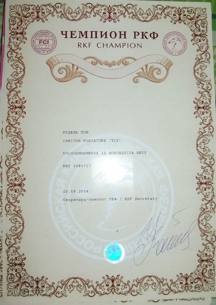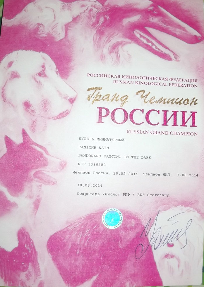 Братик Фифочки - ФРАНТИК ИЗ СОЗВЕЗДИЯ ДЕВЫ, тоже закрыл титул "Юный Чемпион России"! Поздравляем хозяйку Ирину! Папа Тоник и мама Фаня очень гордятся детками! _______________________________________