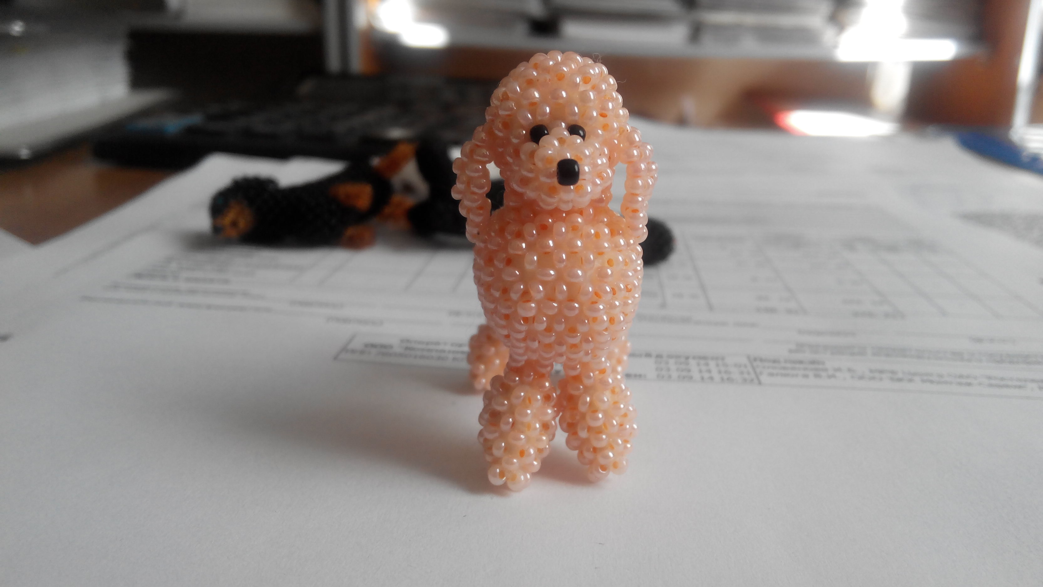 А я недавно купила пуделя из бисера, ручной работы. Он маленький, примерно 5 см. И шарфик и наушники Вот, и я похвасталась )))). Кстати, если кому понравиться из бисера, она сможет сплести и в другом цвете )))) Я скоро с ней созваниваться буду. Хочу ей дать картинки с выставочными стрижками, может и такого пуделя она сможет сделать ))))). А ещё у меня есть ночнушка с пуделем не моего размера, которую взяла из жадности (потому что с пуделем ) _______________________________________