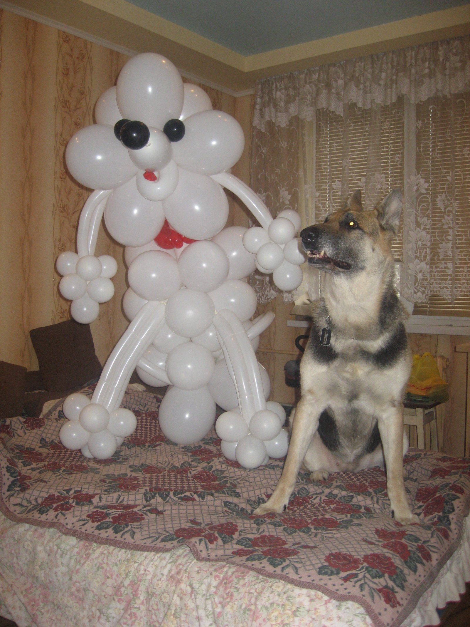 А мне вот такого пуделя подарили... правда он не надолго, но хоть фото на память останется. Овчарка нормального роста, пудель 140 см