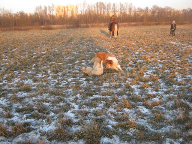 Вот сегодня доча тренировалась ,а мы гуляли.Людвиг первый раз общался с лошадьми!)Первый блин комом пытался попробывать на вкус хорошо лошадка спокойная была!Но набегались и напрыгались хорошо