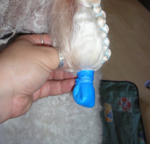 Перед закручиванием пакетика надо обязательно проверить, где заканчивается само ухо. Если этого не сделать, можно случайно перетянуть кожу уха и сами можете представить, чем это может закончиться...