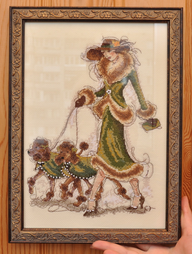 Я наконец-то закончила вышивку "Дама в зеленом...Prancing Poodles"