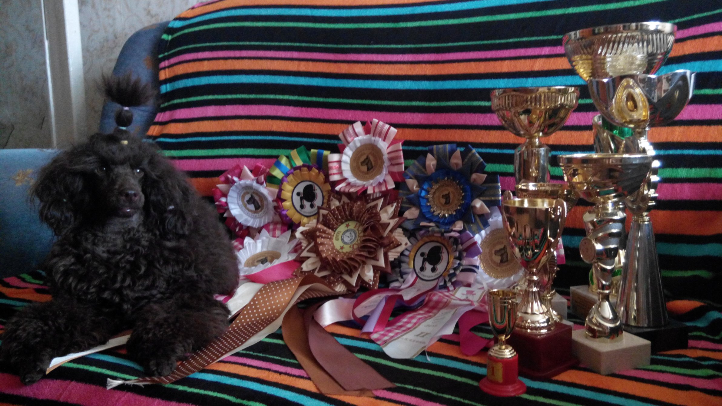 ну, дорогие мои, владельцы, собаки, заводчица.. прошел уже целый год с тех пор, как на свет появились 4 коричневых Яшистых чуда.. и,думаю, каждый из хозяев этих чуд счастлив так же, как я.. моя мечта о собаке с детства занимала первое место среди всех желаний. и вот, в прошлом году она исполнилась.. естественно, о пуделе изначально не было и речи, но работая в коллективе, где на 12 человек приходится 11 таких кудрявых морд, перестаешь думать о других собаках вообще! спасибо Юлии Васильевне (для меня она просто Дед Мороз) за то, что исполнила детскую мечту! Эта собака ни разу за 365 дней своей жизни не заставила меня пожалеть о том, что она появилась в моей жизни (даже когда она писает на кровать и съедает пачку анчоусов); ни разу не заставила переживать из-за нее (не уезжала на другой конец города в троллейбусе, не подбирала всякую чушь на улице, не жаловалась на самочувствие и за всю свою жизнь собрала на себя всего 1-го клеща) и вообще приносит в мою жизнь только радость и безграничное счастье! надеюсь, я не одна так думаю о своей собаке! и хозяюшки Ярополка, Японии и Ямахи тоже довольны=) А заводчица, которая с первых дней с нами - поддерживает, холит, лелеет и стрижет :) - настоящий Дамблдор в женском обличии, за что ей огромнющее спасибище и низкий поклон! Обещаю завоевать со своей Славушкой все титулы и еще больше, чем все=) Всех с Днем Рождения! Любите своих кудряшек и никогда не давайте им грустить!)