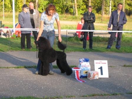 Рококо,спасибо,так фотку гораздо лучше видно. А у нас во Владивостоке в субботу и воскресенье проходили Регионалка(эксперт Сенашенко) и Всероссийка(эксперт Горохов).Под Сенашенко я показывала только Любу и ее дочь Бони.Получили соответственно ЛПП и САС ПК.А в группе,как это уже стало противной традицией,Люба получила............пинка под зад........блин.......Хотя Сенашенко меня успокаивала,обвинив во всем звезды.Ну и бог с ними ,с ентими звездами....,в любом случае Сенашенко была просто душечкой В воскресенье я показывала четырех пунделей своего разведения" Из Ворожеи" и еще одну особу,доставшуюся мне ,как алиментную.Итог три ЛПП .Боняша закрыла Чемпиона последней САСкой ,и алиментная плучила отлично без места.В группе два моих ЛПП вылетели сразу ,а Любу выбрали в финал в группе одной из пяти соб и ессссссссно,потом дали ...пинка.А Горохов так расхваливал Любу.Даже мне" лапшу на уши навесил",что я имея грандиозные габариты,просто летала по рингу.Вот нельзя слушать мужчин...,всяко,обманут.Улет ели мы из группы.........ни с чем