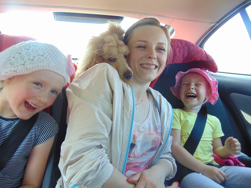 Да, помню-помню, едем себе спокойно, собаки в переносках сзади сидят, на переносках куча сумок еще навалена, и тут в зеркале заднего вида медленно всплывает морда с антеннами на голове, Наташа Шачкова аж пугалась))))) Ника стабильно вылезала из контейнера, как мы только его не прикручивали. Пришлось купить другой, с более прочными замками.