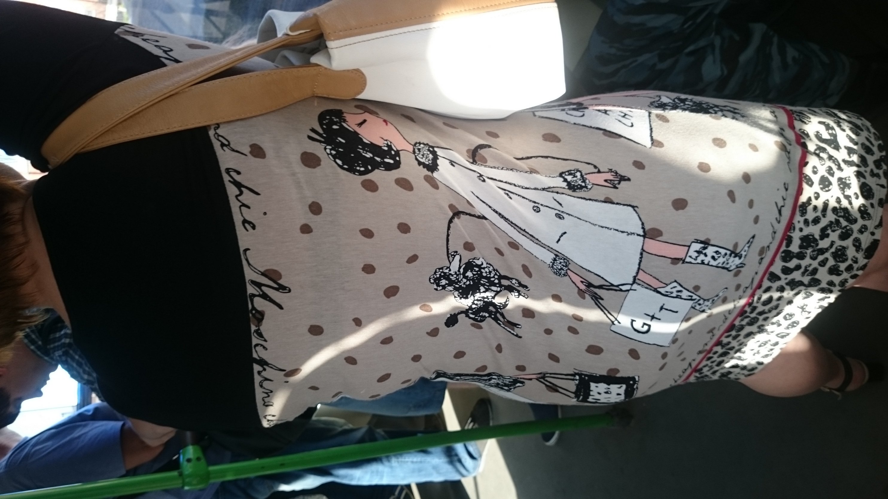 На днях увидела платье на женщине в автобусе, получилось только так сфотографировать: