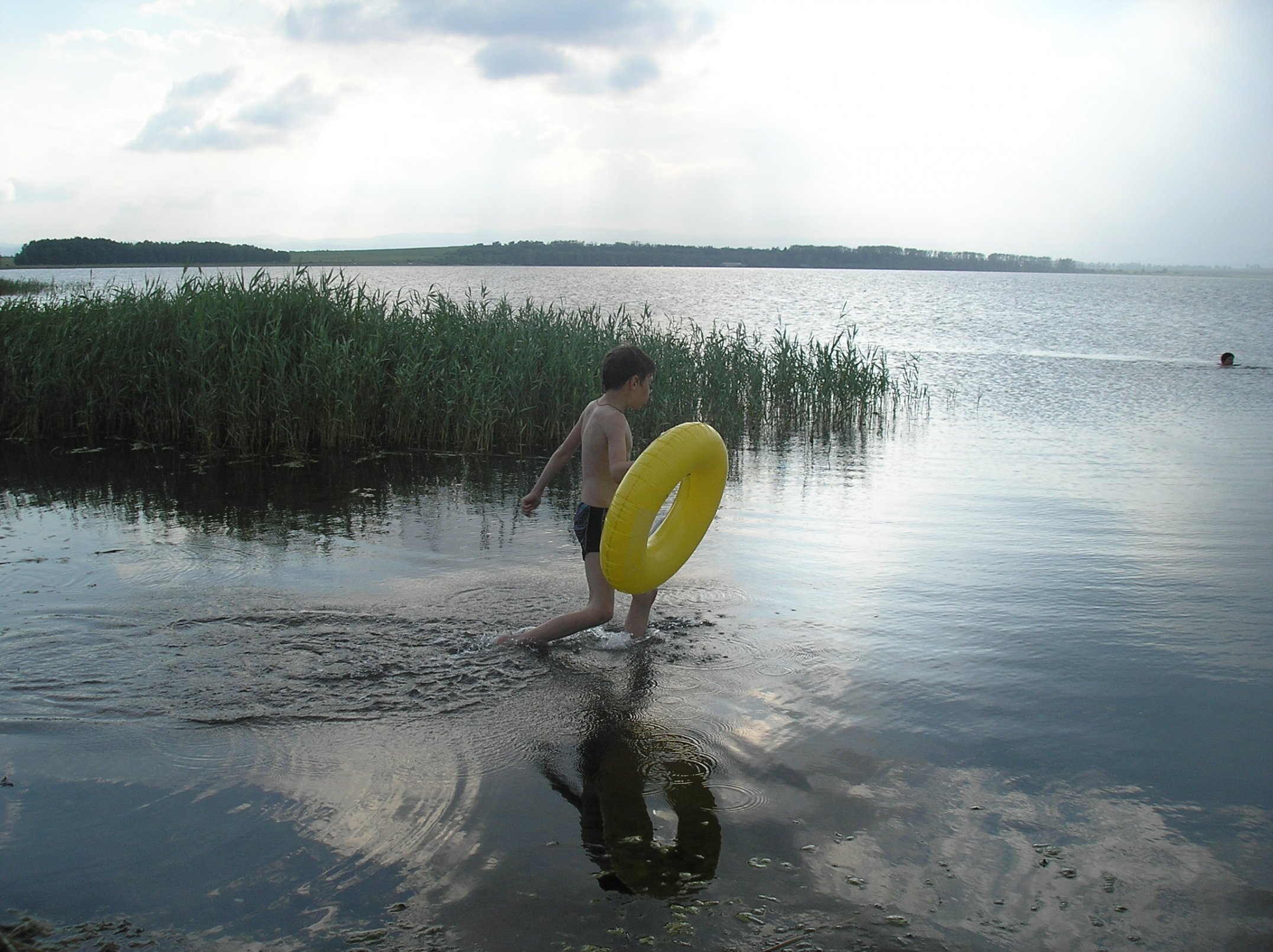 Наше Солёное Озеро славится своими целебными грязями. Знающие люди стараются весь купальный сезон обязательно посещать его. Мы с кучей собак купались в камышах :), но зато там на дне песочек. Где пляж - там грязевое дно. Полезно, а купальники потом ничем не отстирываются. Кожа смывается только с мылом)))) Нам же повезло, особенно Елисею. Он остался беленьким. Шерсть как после шикарной косметики - упругая, отличный объём, не колтунится. Так что советую там накупать собачек. |