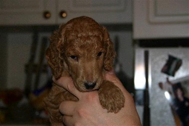 а вот голова, мне, честно скажу, точнее даже морда, голову всю и то не видно, мне не понравилась... рубоватая она и подбородка не видно (может, это ракурс такой), а может, он действительно плозо выражен.... За Вашим псом, несомненно, стоят собаки, очень много сделавшие для абрикосовых пуделей на территории бывшего ССр, но это не не значит, что Ваш кобель - это супер производитель...