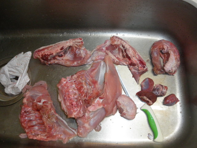 Читала, что крупным собакам дают их люди, про мелких - не в курсе. Купили вчера целую индейку. Главным образом из-за девчонок - хотелось их побаловать индюшатиной. А кусками тут не продают... Поставила им целую - девочки обалдели Но грызть начать попытались! Андромеда даже сказала Р-РРРР-РЫ.... чем несказанно удивила Венеру (у нас ведь такого никогда не было! )Ну, испытывать что дальше будет, я не стала. Отрезала от тушки нам куски (в тарелке горой лежат) , остальное порезала собакам (в раковине куски лежат). Кстати, удивительно какие крошечные у индеек сердце, печень и желудочек - такие же по размеру, как у курицы..... . _______________________________________