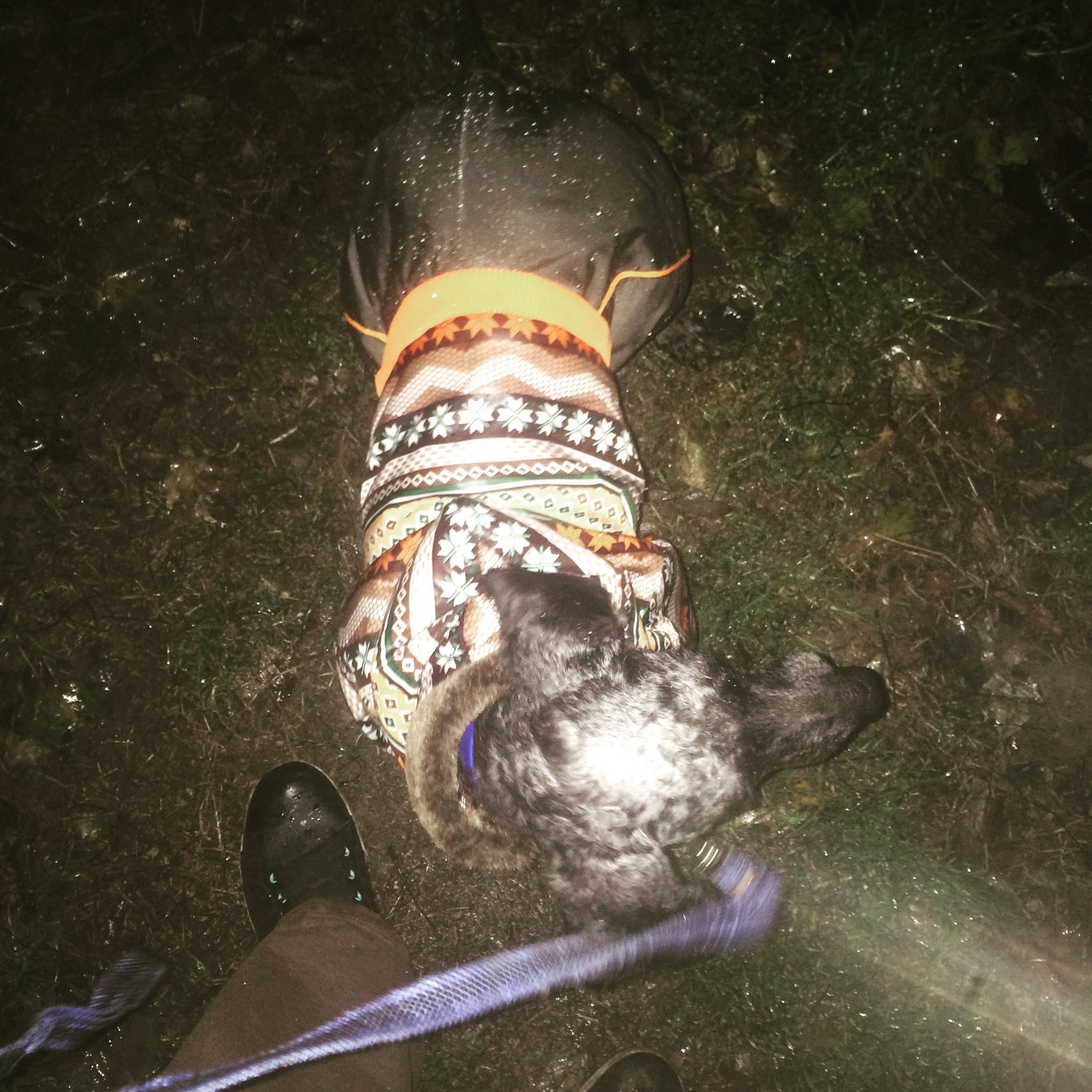 У нас Мыша тоже запрыгнула. И спрыгнула, поскольку на диване Айкино место и она Мышу гоняет. А мы обновили одежку- в попонке Мыше холодно и мокро было, пришлось идти, покупать) модница Мышка ещё та! Все спокойно перемерила, походила, побегала... Выбрала самый удобный и пошла гулять прямо в нем- тестировать промокаемость))) Зато как она радуется, когда на улицу идём! |