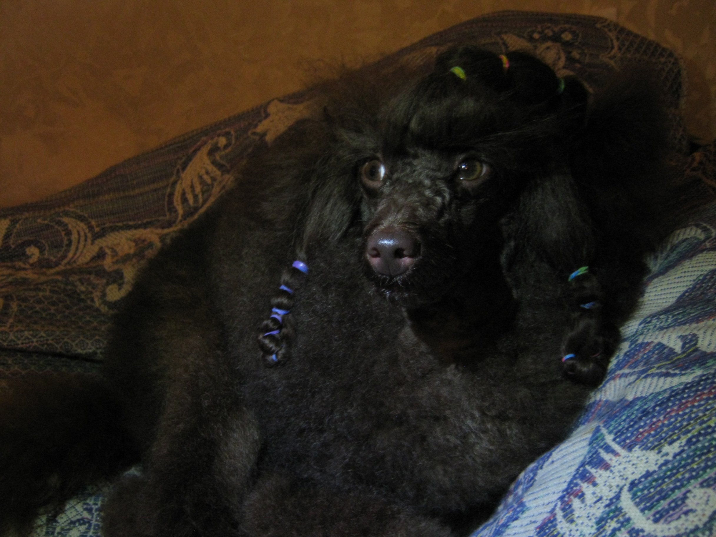 А мы сегодня Дюшеса помыли, расчесали и повесили на ушки и на чубчик зажимы для орхидей - получилась девочка!