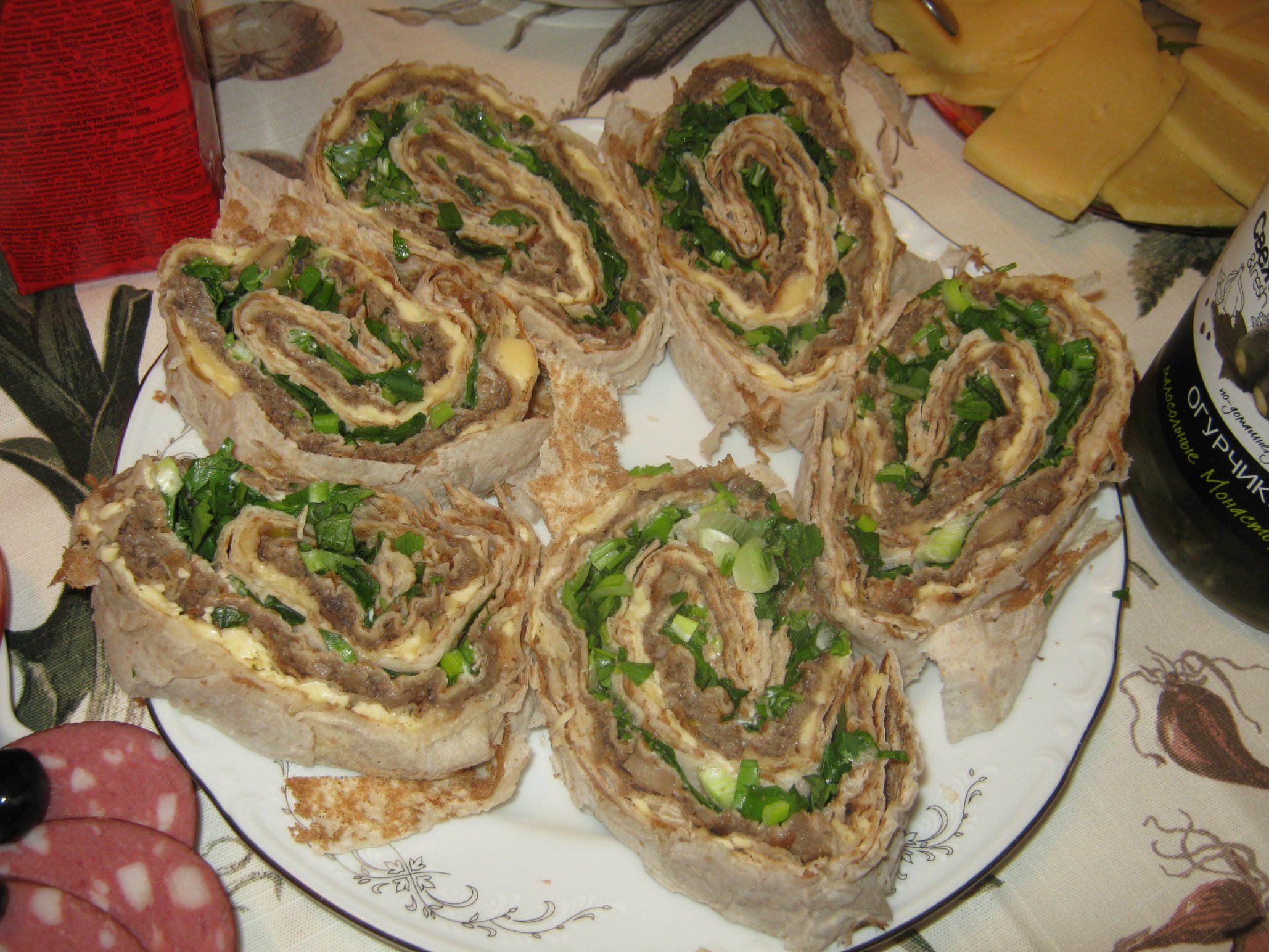 А еще я делаю рулет из армянского лаваша с грибами, сыром и зеленью. Лаваш покупаю в армянском магазине, он там настоящий и вкусный. Шампиньоны кило нарезаю и тушу с лучком мелконарезанным. Потом лист лаваша смазываю тонким слоем майонеза, на него половину грибов, накрываю вторым листом, смазываю майонезом и насыпаю тертый сыр и зелени побольше, снова лист лаваша, майонез и оставшиеся грибы. Скручиваю в рулет, оборачиваю пищевой пленкой и на ночь в холодильник. Это просто супер! Вот :)