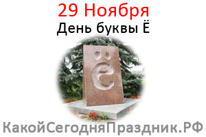 Буква «ё», к сожалению, в настоящее время незаслуженно забыта, вместо неё все чаще применяют «е» как равноценную замену. С целью предотвращения дальнейшей дискриминации полноправного символа русского алфавита в его честь учредили специальный праздник, который отмечается 29 ноября. Эта дата была выбрана неслучайно. Именно 29.11 в 1783 г. проводилось заседание Академии Русской словесности, на котором княгиня Е. Р. Дашкова при участии Державина и Фонвизина предложила заменить сочетание «io» новой буквой «ё». Стоит отметить, что по-настоящему она стала популярной благодаря Н. М. Карамзину – историку, литератору и реформатору родного языка. Именно он в 1797 году стал первым, кто активно начал применять её в любых печатных изданиях. Кстати, на родине Карамзина в г. Ульяновске даже установлен памятник – на треугольной гранитной призме изображена буква «ё». В школьной практике соответствующим приказом употребление этого символа в обязательном порядке было введено в 1946 году, причём этот приказ не отменён до сих пор. В праздничный день хочется вспомнить несколько интересных фактов о букве «ё»: в нашем родном языке она присутствует почти в 12500 словах; фамилия Потёмкин стала первой, где её использовали при написании; в XVIII-XIX веке «ёканье» считалось атрибутом речи простолюдинов, тогда как интеллигенция демонстративно предпочитала «еканье»; в белорусском языке точки над «ё» ставятся непременно, а в русском – факультативно.
