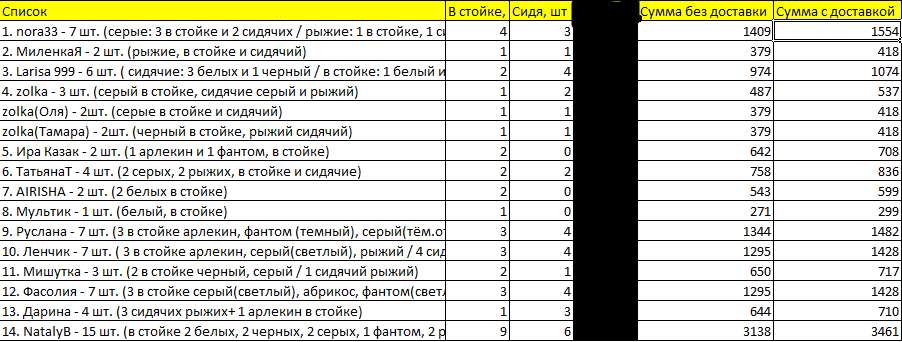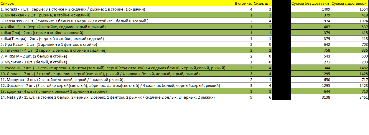 Список с расчетом конечной стоимости для каждого участника заказа. Номер карты сбербанка на которую переводить деньги: 4276880073087938 Евгения Валерьевна М. Прошу не тянуть с переводом средств: