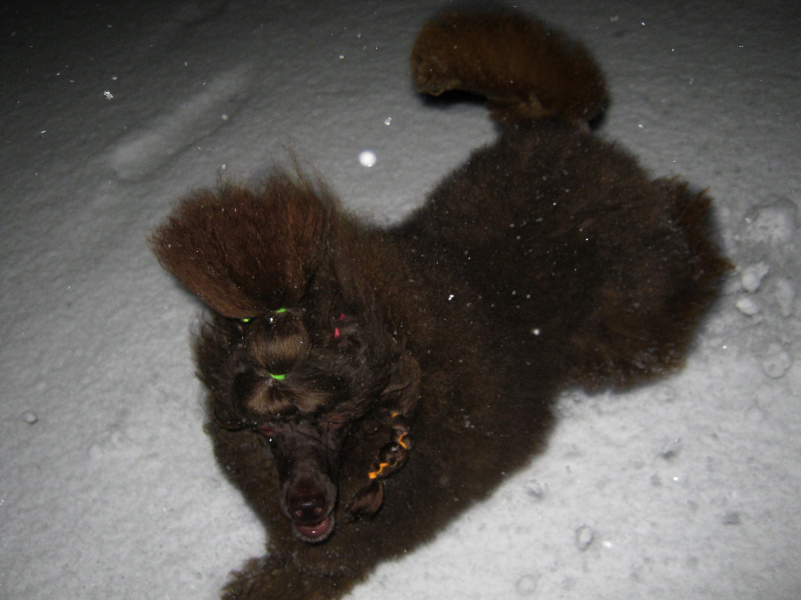 А мы с Дашей вышли гулять вечером и обалдели ,сколько снега выпало ,я не знала, в окно не смотрела ) Думала, там сухо... А там красота. Пыталась её сфоткать, но она с такой скоростью носилась по снегу, плюс темно, фонари и снежинки, что ничего особо не получилось, разве что вот, пролетающая мимо Даша :)))