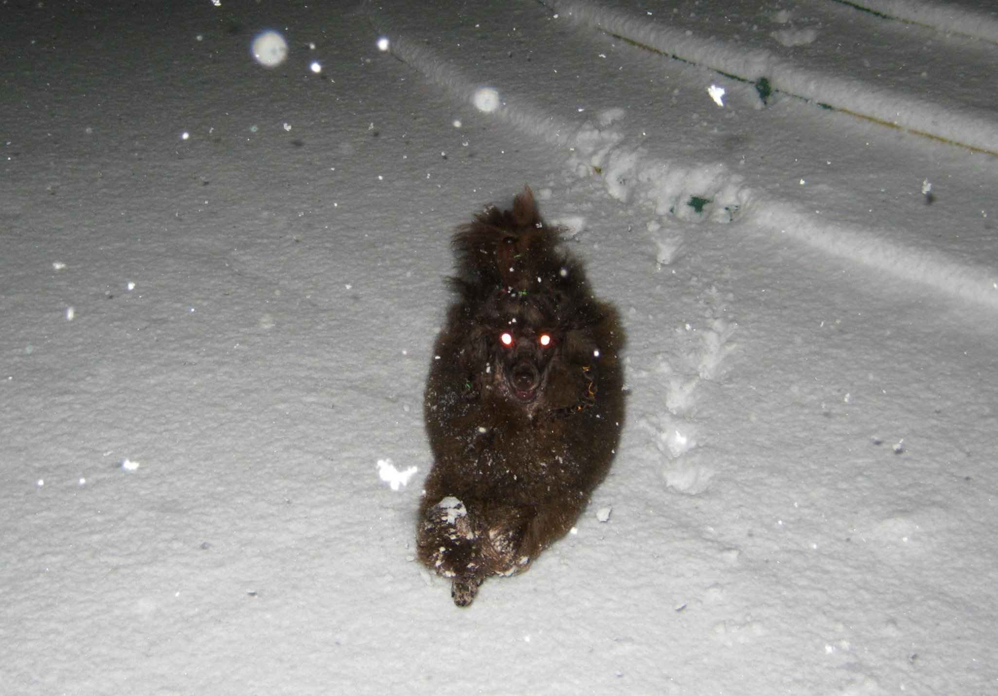 А мы с Дашей вышли гулять вечером и обалдели ,сколько снега выпало ,я не знала, в окно не смотрела ) Думала, там сухо... А там красота. Пыталась её сфоткать, но она с такой скоростью носилась по снегу, плюс темно, фонари и снежинки, что ничего особо не получилось, разве что вот, пролетающая мимо Даша :)))