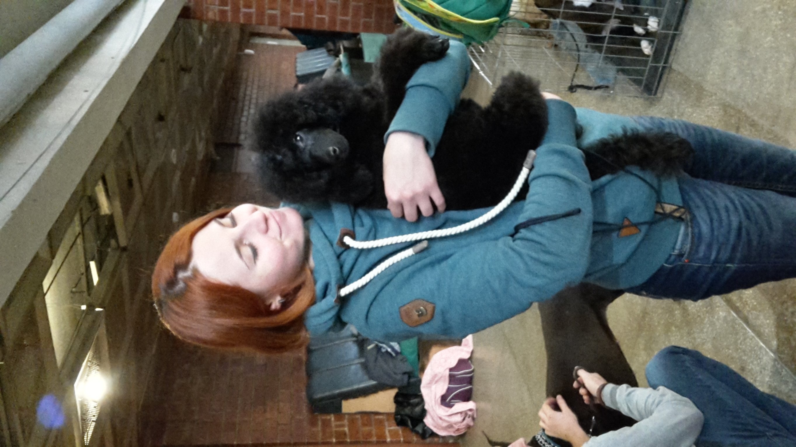 ![]() щеки с обеих сторон давят, понимаете))))))) Всем здравствуйте. Расскажу о нашем с Сулой первом опыте участия в выставке. Мы приехали в Екатеринбург на выставку "Звездное шоу" от клуба собаколюбителей "Экзотика". Помещение мне понравилось: тепло, светло, просторно, было 2 ринга. Мы приехали за 2 часа до выхода пуделей, встали возле самого ринга, справа от судейского стола, но потом рядом устроили манеж со шпицами, и мы решили перебраться чуть подальше, чтобы не быть в самой толчее. Как я убедилась позднее, правильно сделали, потому что на этом месте потом образовался очень плотный "пуделиный островок": все стриглись, чесались и заливались лаком. А мы стояли в стороночке, возле кирпичного столба, и нам было там хорошо и спокойно :) Суламифь вела себя очень хорошо: никого не боялась, со всеми с удовольствием общалась, не тряслась и не нервничала нисколечко. Перед нашим выходом я посадила ее в переноску, чтобы она отдохнула немного, но, по-моему, она в этом даже не нуждалась. Настолько спокойно себя чувствовала. Маленькая деловая колбаса :) |