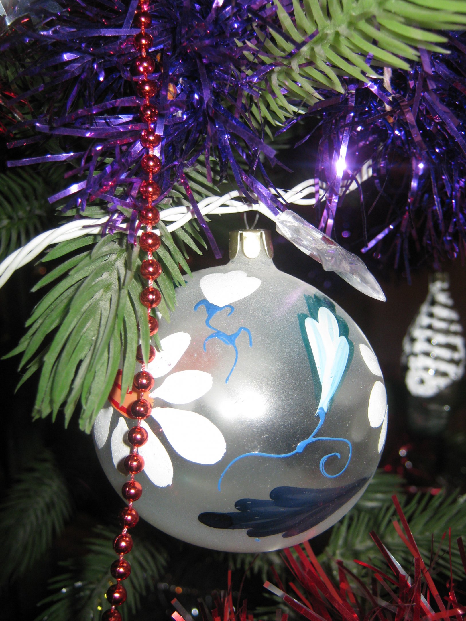 На самое видное место повесила подаренный мне Людой шарик с Дашиным портретом, рядом снеговик от Нади и домик от Русланы (Даня). _______________________________________