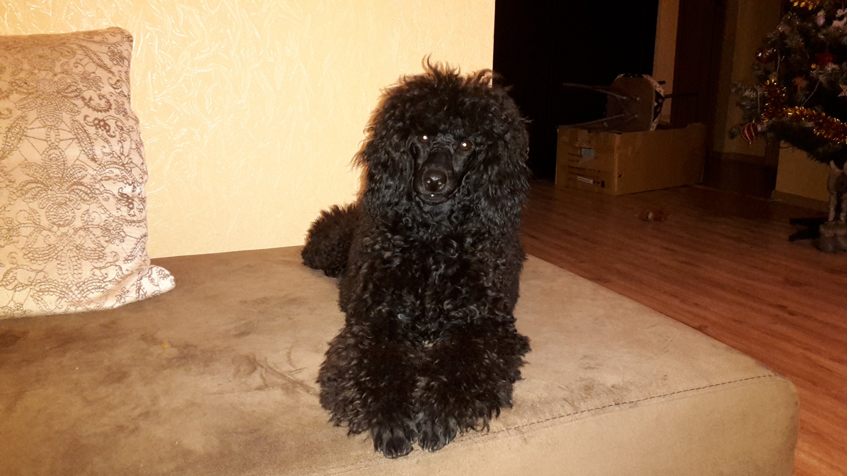Про генетику в основе невротического характера как-то не додумалась, хотя это, в принципе, логично. Жалко таких пуделешек. Резиночку на голову я Суле делаю! Иначе шерсть глаза совсем закрывает. Просто сфоткала раньше, чем навязала резиночку: она такая пушистая и мягонькая после помывки/просушки, милота в общем :) А ушки у нее еще и не отросли толком, там пока нечего завязывать. |